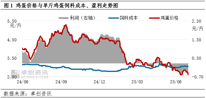 存栏持续攀升、供应压力加大。2025年以来在产蛋鸡存栏量持续攀升,6月份存栏量已经增加至13.40亿只,环比增幅0.45%,同比增幅6.77%,存栏量再创新高,达到近三年的最高值。存栏量的持续攀升使得鸡蛋供应压力加大。